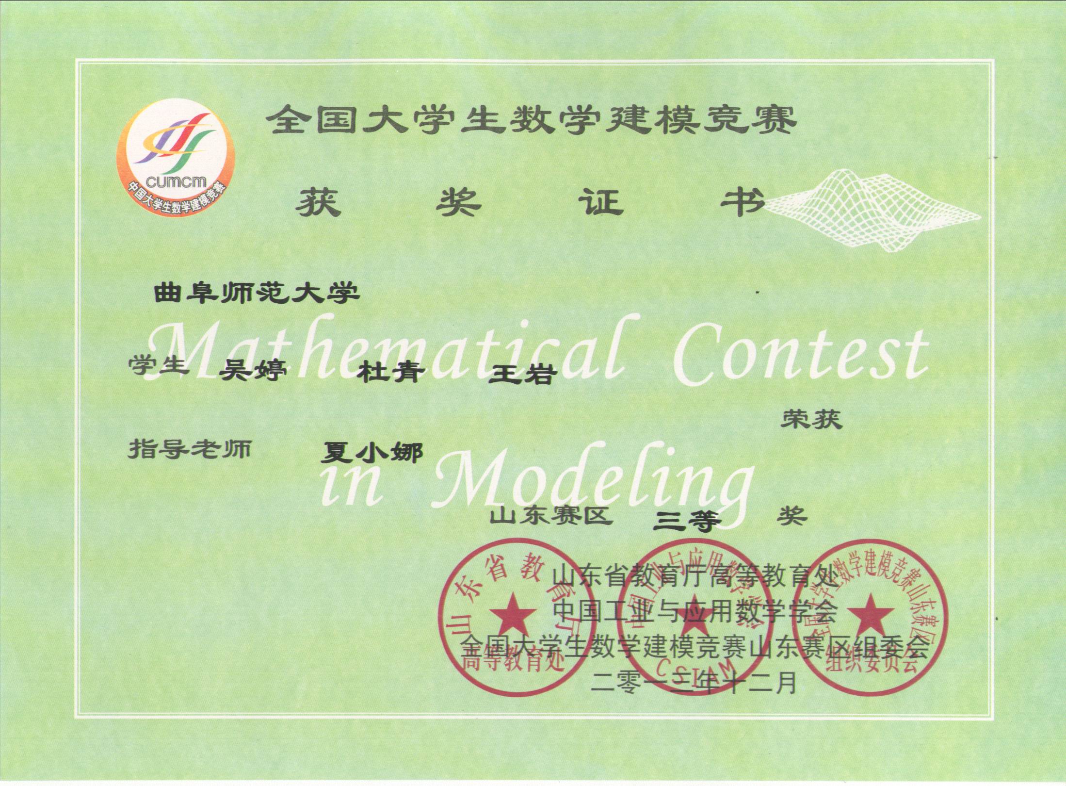 上一条: 2013年第十一届齐鲁大学生软件设计大赛获奖情况