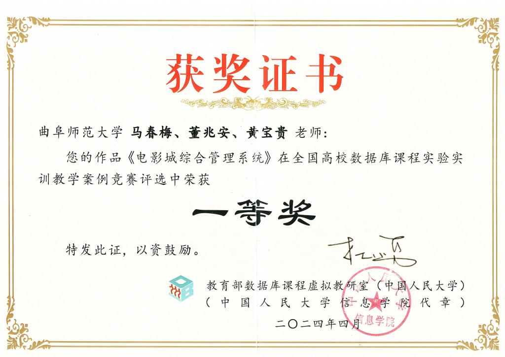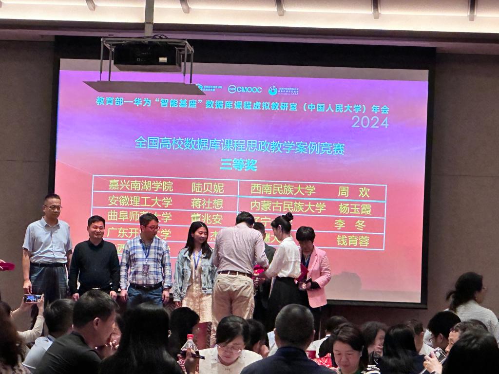 《数据库系统原理》课程团队积极参与虚拟教研室各项事务及日常会议,按时保质保量地提交相关教学文档,所提交的《电影城综合管理系统》案例荣获“全国高校数据库课程实验实训教学案例竞赛一等奖”,《守护数据安全,共筑诚信社会--数据库安全机制与技术探究》在第一届全国高校数据库课程思政教学案例竞赛评选中荣获三等奖。
