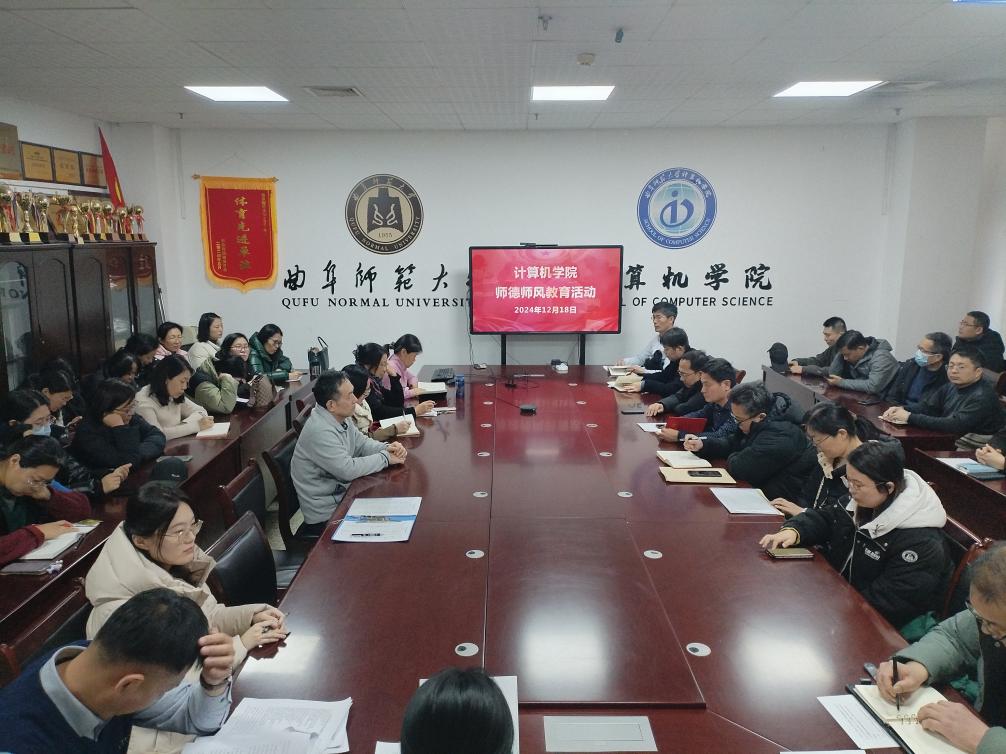 在C1011会议室召开全体教职工师德师风教育活动。活动由党委书记张明洁主持,学院全体教职工参加。
