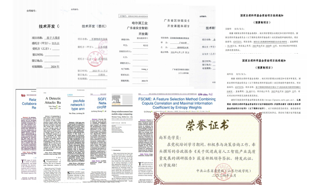 2024年,学院获得省部级以上纵向项目7项,其中获批国家自然科学基金面上项目2项(吴俊华教授,尚军亮教授),山东省海外优青项目1项(李良知教授),山东省自然科学基金面上项目2项(熊晶教授、李凤副教授)、青年基金2项(袁莎莎副教授、魏冰冰博士),获得横向项目15项。项目合同经费712.98万,到账经费560.55万,均创学院历史最高金额,其中,纵向到账经费234万,横向合同经费478.98万、到账经费326.55万。以第一作者或通讯作者在国内外高水平学术期刊上发表论文111篇,其中SCI一区及TOP期刊21篇,授权发明专利7项、软件著作权34项。学院首次有咨政报告获省领导签批(尚军亮教授)。