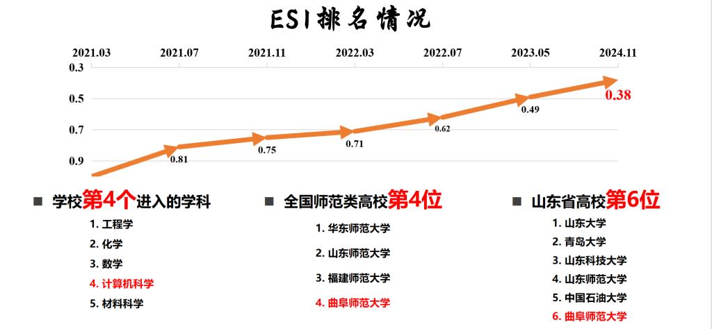 2024年,计算机科学学科ESI前1%排名稳中有进,排名百分位0.38,位居全国师范类高校第4位,省属高校第4位,跃入全国师范类高校第一梯队。计算机科学与技术学科入选2024年软科中国最好学科,排名全国134位,位居全国前47%,是兔子先生