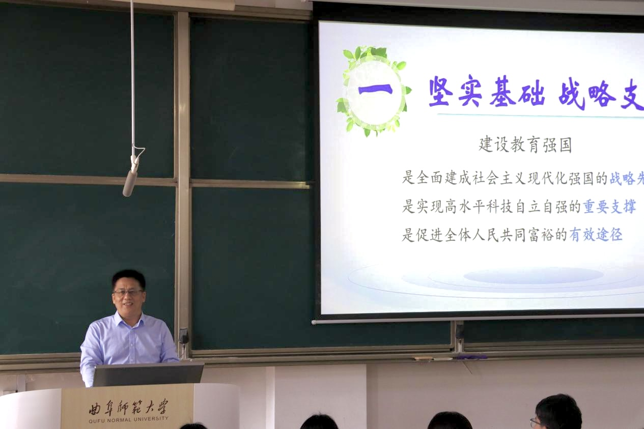 5月9日,党委常委、副校长胡凡刚以“从教育大国走向教育强国”为主题,为23级、24级计算机科学与技术(师范)专业的学生讲授形势与政策课。