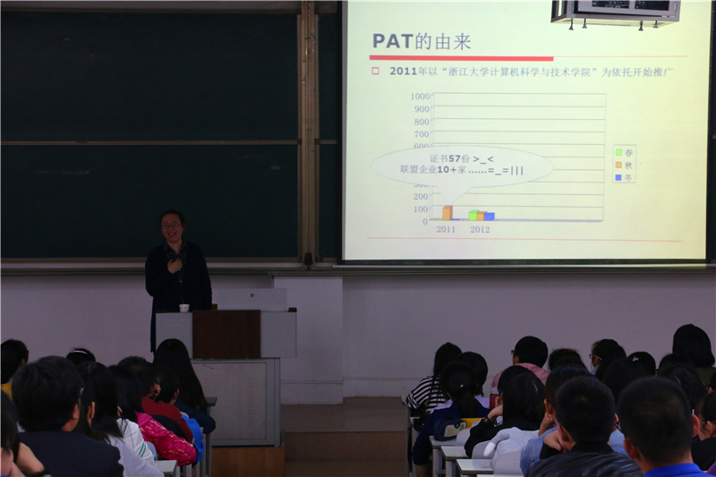 通过此次报告,同学们对PAT考试国内外各大计算机相关企业的用人需求及考核标准有一个客观的认识有利于同学们毕业后应聘时的竞争力,促进了同学们学习的积极性