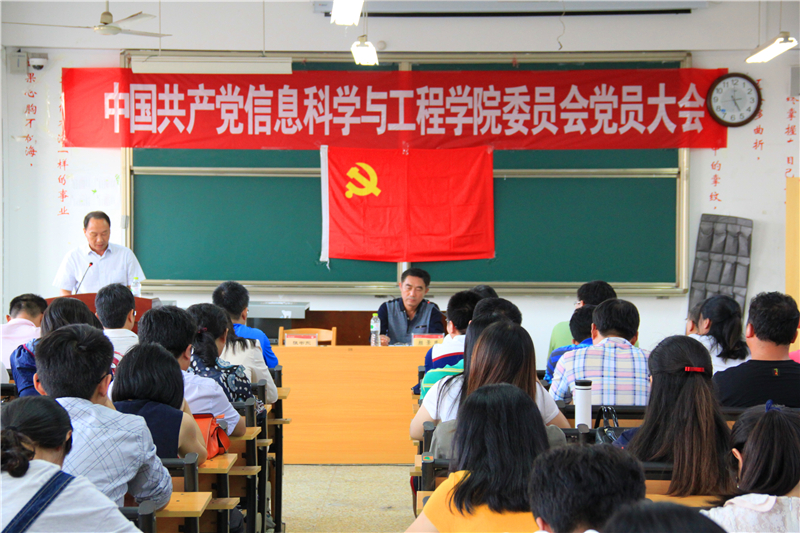 2016年9月22日下午4:30,信息科学与工程学院于C401成功召开了中国共产党信息科学与工程学院委员会党员大会。信息科学与工程学院党委书记张书东,党委副书记颜景民主持召开大会,信息科学与工程学院全体党员出席了本次会议。