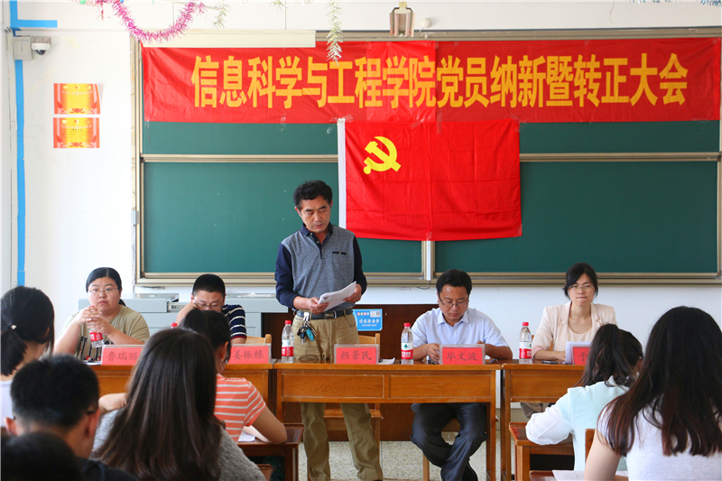 为培养新一批优秀的党员,信息科学与工程学院于2016年6月22日下午2:30在C406召开信息科学与工程学院党员纳新暨转正大会。出席本次大会的有信息科学与工程学院党委副书记颜景民,团委书记毕文波,辅导员姜振栋、于运清、鲁瑞丽。