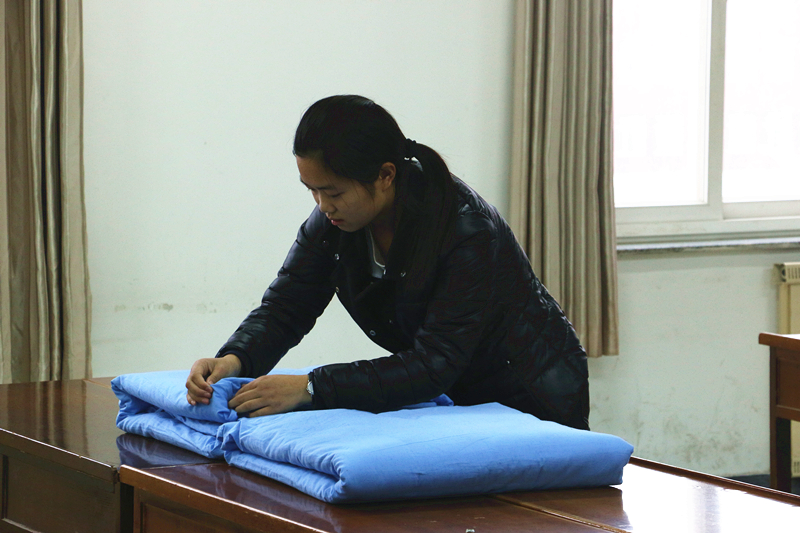 在主持人简短的开场语后,比赛正式开始。15级新生充分发挥出各自的才能,无论歌曲、还是舞蹈,充分展现出宿舍浓重的文艺氛围。其中,520宿舍演唱的《无与伦比的美丽》,仿佛诉说了舍友之间相聚的喜悦;501宿舍的歌舞《我的天空》,更是洋溢出青春的活力。随后,进入内务整理比赛环节。主持人发令后,各位参赛同学使出浑身解数,力争在规定的时间内把面前的被子整理达标。伴随着柔和的乐曲,本次比赛逐渐进入尾声,各位评委依次入场打分。
