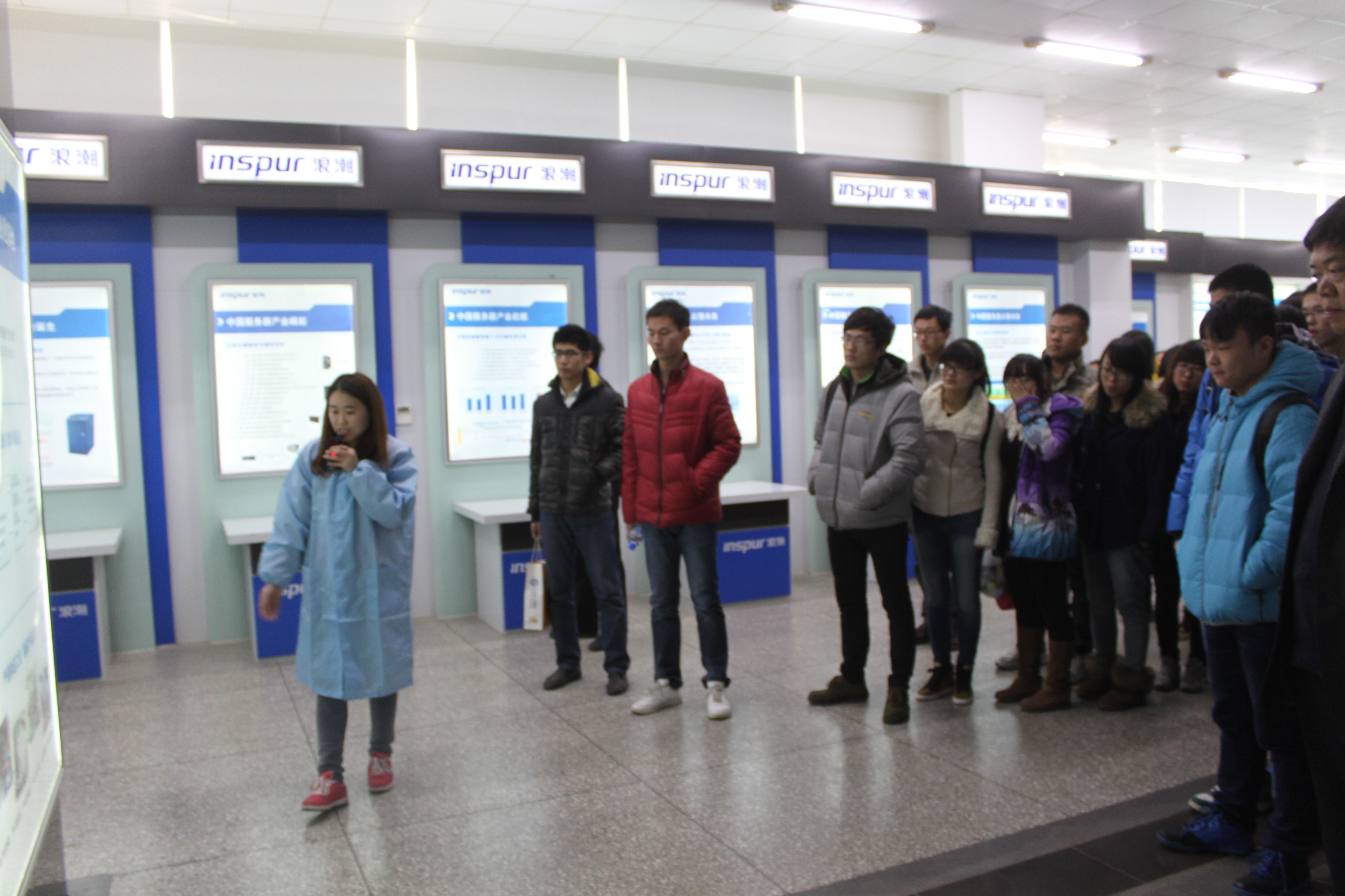 师生在浪潮优派公司杨立国、陈亮两位老师的带领下先后参观了浪潮集团的服务器生产线、浪潮集团云计算中心和展示大厅,听取了公司人员对于浪潮服务器产业的发展、浪潮公司的发展现状及未来的规划的讲解。
