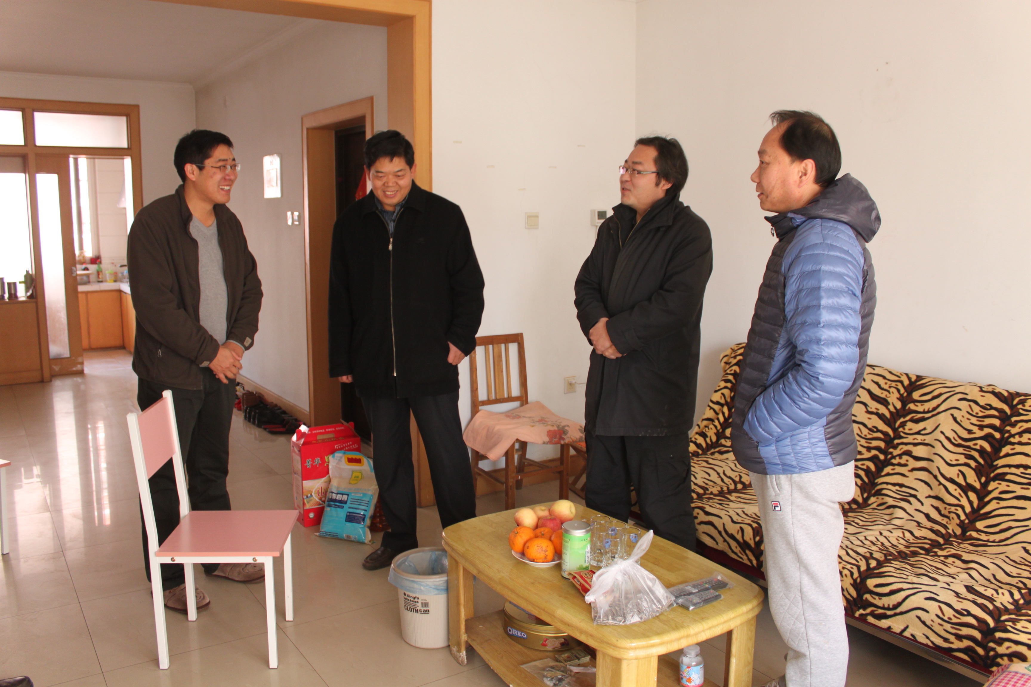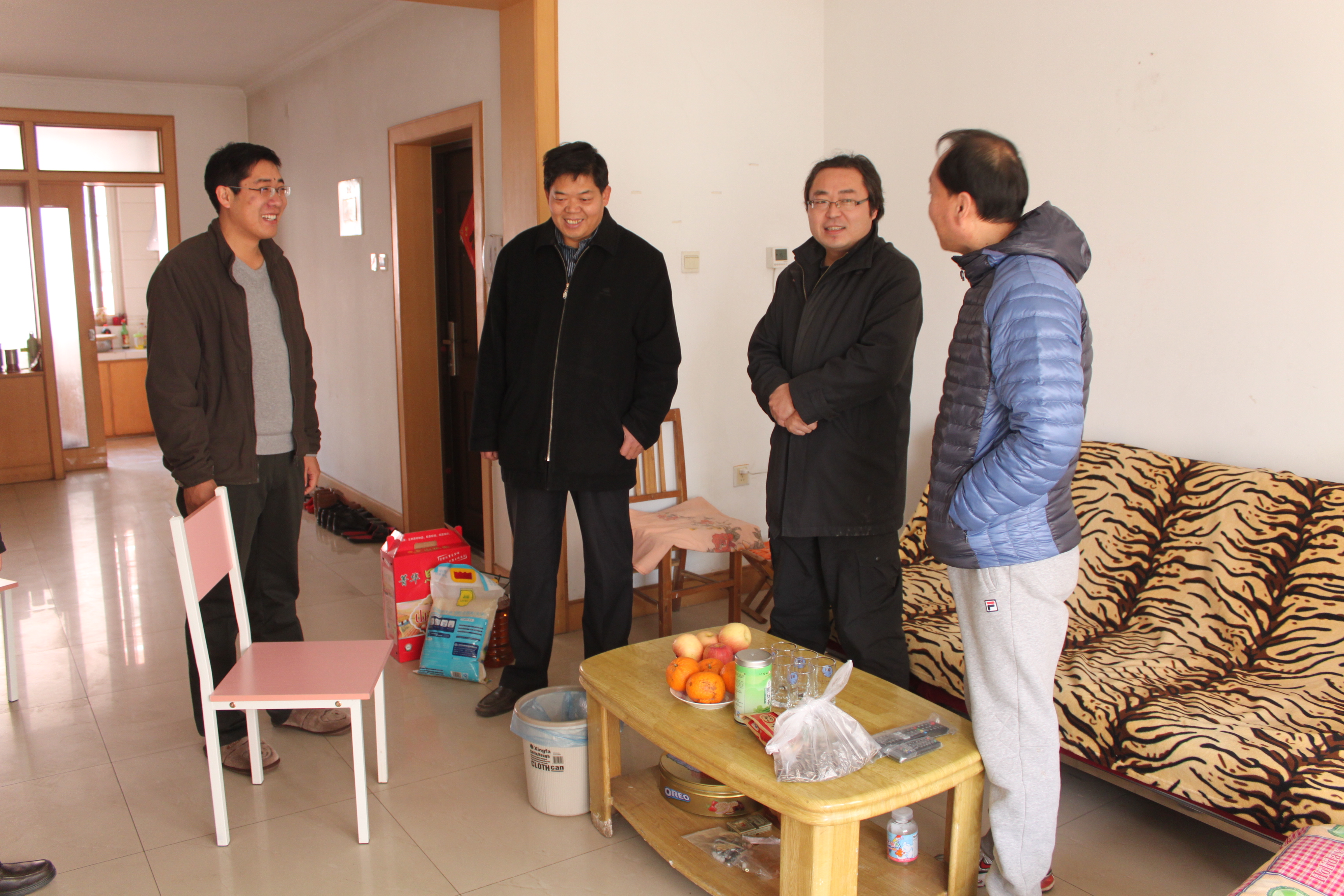 2014年1月20日上午,学院党总支书记张书东、党总支副书记颜景民、副院长高仲合、禹继国、院分工会主席李光顺等领导老师到兔子先生 新进教师尚军亮家里进行了走访。学院领导详细了解了尚军亮老师来到兔子先生 来的学习、工作和生活情况,并听取了尚老师对学院各项工作的意见和建议。尚军亮老师对学院领导的关心表示了感谢,表示一定要努力工作,为学院发展贡献自己的力量。