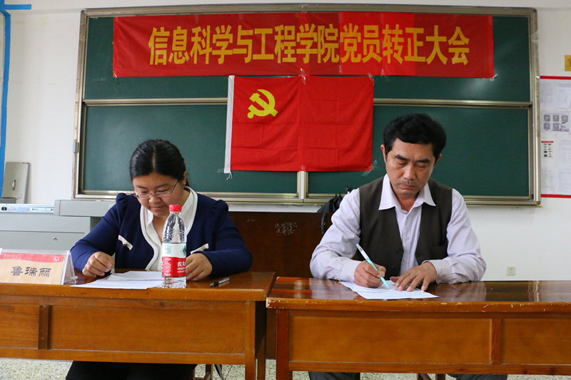 为做好预备党员转正工作,信息科学与工程学院于2015年5月29日下午3:00,在C406召开了党员转正大会。主持此次转正大会的是信息科学与工程学院党总支副书记颜景民,辅导员鲁瑞丽老师。参加此次转正大会的为信息科学与工程学院全体预备党员。