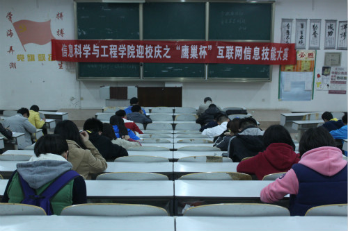信息科学与工程学院于日照校区E楼201、303、304教室同时举行“鹰巢杯”互联网技能大赛顺利举行,本次比赛由学生会科技创新部主办。