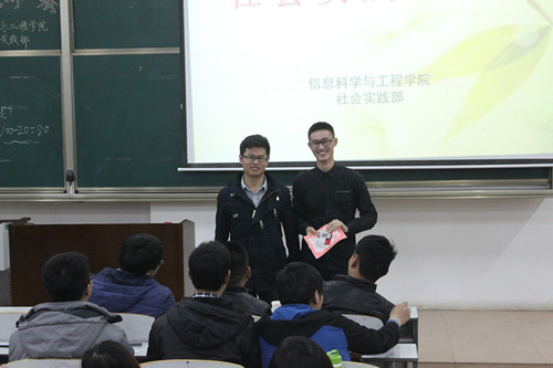 60年校庆,为抒发信息科学与工程学院学子对母校的情怀。4月12日晚7:30,由信息科学与工程学院社会实践部为举办的“迎校庆,话实践,社会实践演说家”活动于E楼303圆满举行。学生会成员出席活动并担任评委。