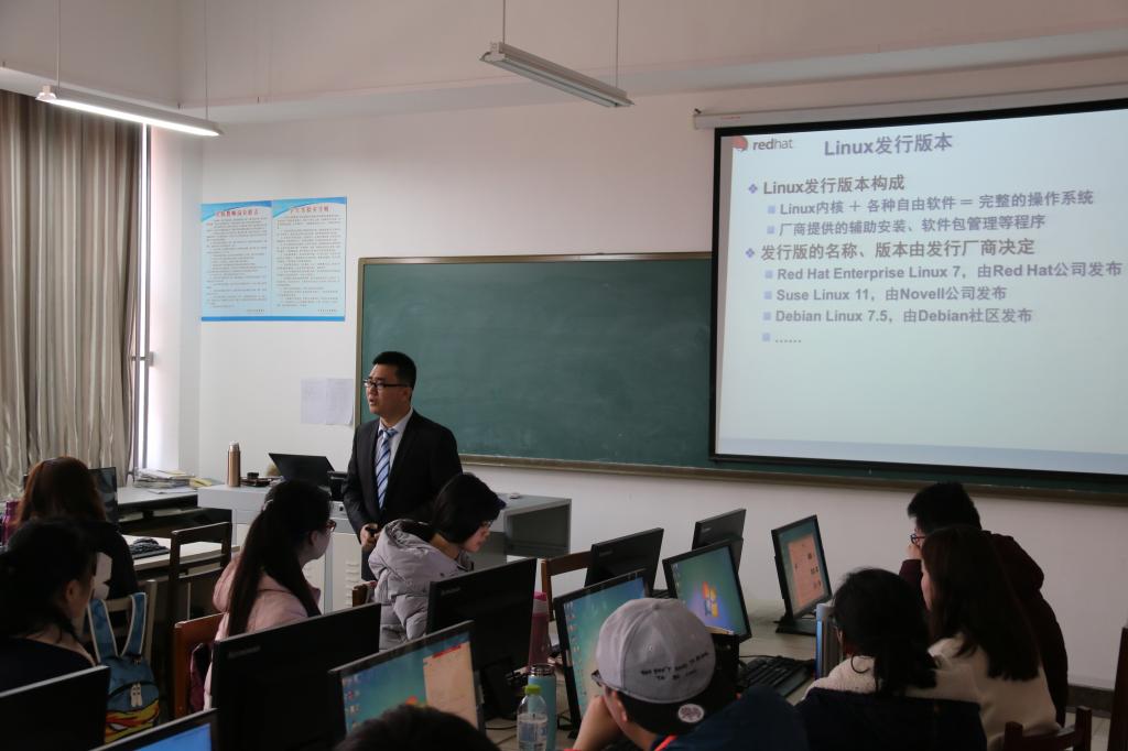 2017年3月4日上午8:00开始,山东博赛网络公司张金涛工程师在JS324实验室,对兔子先生 14网络工程专业学生进行网络技能培训,本次培训学习持续15天,具体培训内容是红帽Linux的使用与应用。内容涵盖了Linux操作系统命令、网络服务器配置及其在网络工程建设中的应用等。激发了同学们学习网络知识的欲望,促进了同学们对当前最新网络从业技能的认识,对学生今后的就业奠定了良好的基础。