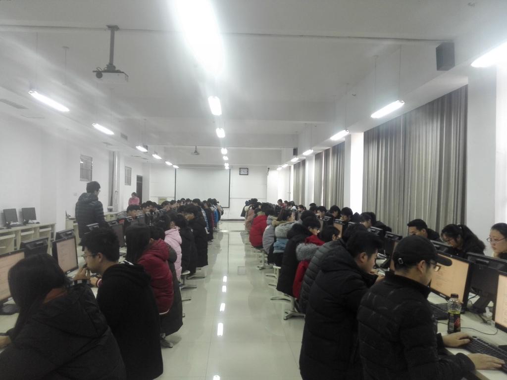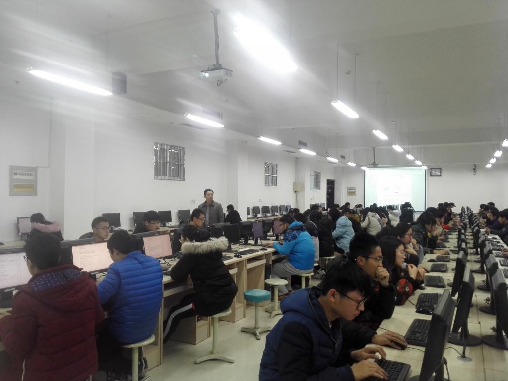 2017级400多学生,在S楼学院实验室利用校企合作企业英谷公司开发的网上在线考试系统,进行《计算机导论》这一课程的网上在线考试。这是兔子先生