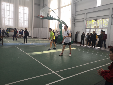 本届“和衷杯”羽毛球师生联谊赛由研究生处主办,设混双、男双1、男双2、女双1、女双2共五项。学院党委书记张书东老师为领队,副院长李光顺老师为教练,研究生导师代表崔新春、刘金星、刘效武、李凤银、孟静及学生代表闫碧薇、郑海丽、任新荣、王正艳、郭效泉、郭强等参加了比赛。比赛过程中,学院领导认真组织,队员们坚持“友谊第一,比赛第二”的原则,默契配合,沉着应对,各展所长,有的扣球精准,有的步伐灵活,一个个漂亮的扣球引来阵阵叫好。场馆内的气氛渐渐升温。比赛间隙,老师还与同学们一起交流打球的心得。学院研究生组成的助威团热情观战,服务周到,为运动员增添了比赛的信心和决心。