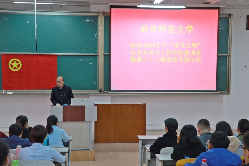2018年11月10日下午2点,信息科学与工程学院“青马工程”培训班暨二十八期团校开班仪式顺利举行,信息科学与工程学院党委副书记肖龙航、本科生党支部书记于运清及学院部分骨干学生干部参加了开班仪式。