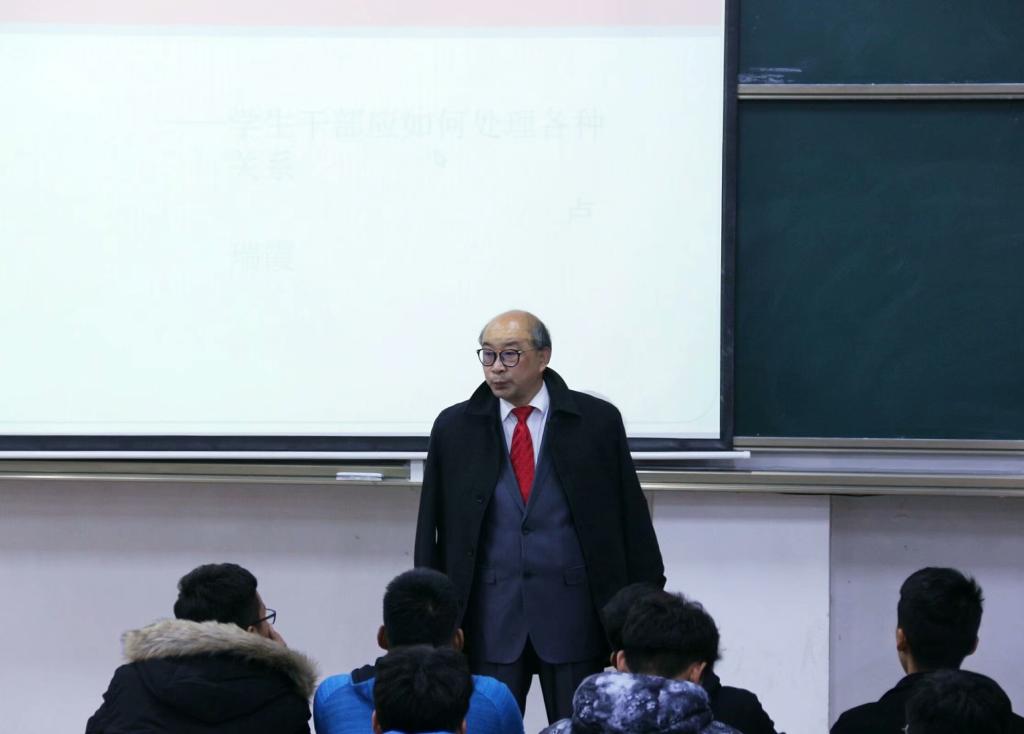 活动伊始,毕文波老师发表讲话。他提出学生干部的身份是学生,在做好学生工作的同时,要高度重视自身学习。并围绕科技创新比赛对个人成长的意义,结合学院获奖实际,展示了科技创新比赛对个人素质提高、考研和未来就业的重要性,鼓励同学们积极参加科创比赛。随后,法学院卢瑞霞书记以”在温暖中坚定前行“为主题,分别从为什么要处理人际关系、如何处理人际关系、人际关系的重要性和处理好人际关系的红利四个角度给在场学生干部上了一堂精彩的课程,并以”如何处理人际关系“为重点,与同学们分享经验。她希望学生干部们能不断丰富提升自己,拥有和谐融洽的人际关系。最后,肖龙航书记进行总结。他强调,学生干部处理好人际关系对自身和学院未来建设具有双重意义,要求其在学习上应积极参加科技创新比赛,在工作上认清根本,提高处理人际关系的能力,不断提升自身执行力,做合格学生干部。
