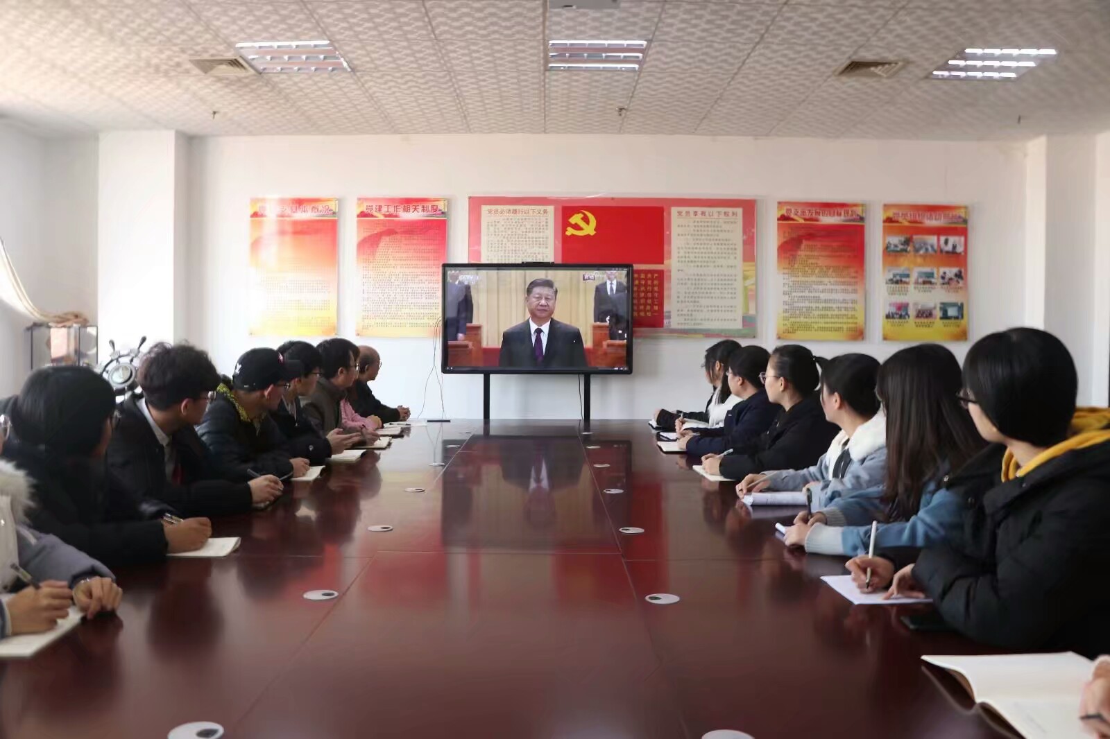 在视频中习近平总书记引经据典,结合历史教训和中国国情实际,以十二个“四十年”回顾中国改革开放40年在经济、文化、科技等方面发展的光辉历程,赞扬了中国人民为改革开放事业作出的杰出贡献。并总结了改革开放以来的伟大成就和宝贵经验,提出全面深化改革过程中提到的“九个坚持”,为中国未来发展指明方向;明确了坚定不移全面深化改革、扩大对外开放、不断把新时代改革开放继续推向前进的目标要求。习近平总书记动员全党全国各族人民要更加紧密地团结在党中央周围,高举中国特色社会主义伟大旗帜,将改革开放进行到底,不忘初心,牢记使命,在新时代里创造中华民族更大的奇迹。与会领导老师和学生代表们认真收看大会直播内容,感受改革先锋的先进事迹,深刻领会了习近平总书记重要讲话精神,领略了改革开放40年来党、国家、社会和人民所取得的辉煌成就。
