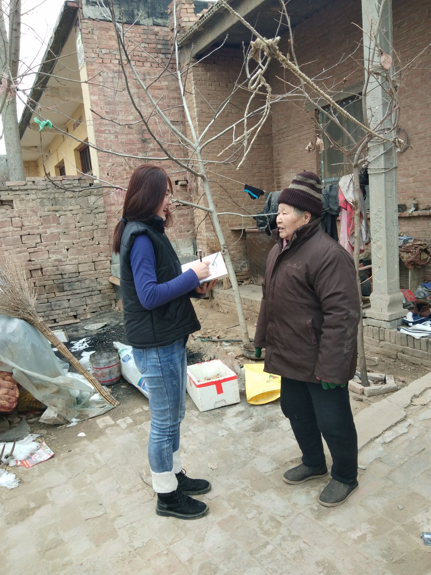 随后,调查组成员分两组实地走拜访了该村空巢老人和留守儿童,对老人和孩子的家庭情况,心理状况等问题进行了调查。队员们还和老人们话起了家常,75岁的王奶奶的儿子常年在外,平时只有王奶奶一个人生活,王奶奶的身体很不好,王奶奶最大的愿望就是孩子们能常看看她。在和一些留守儿童的交流中发现这些小孩非常的叛逆,在他们的身上看到了家庭教育的缺失和亲情淡然。