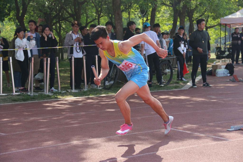 随着决赛枪声打响,一道道身影飞奔而出,他们奋力奔跑,与对手逐渐拉开距离,在进行交接棒时,他们配合默契,暂时领先。当0510号向终点全力冲刺时,他们已经遥遥领先于其他选手,冲过终点线夺得桂冠!信息学院观众席爆发出雷鸣般的掌声,加油的呐喊声不绝于耳,最后,信息科学与工程学院成功夺冠并一举打破学校男子4×400米记录!