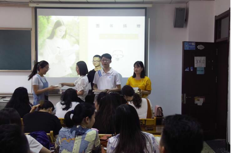 接着,毕业研究生代表向在校的师弟师妹捐赠图书,传递书香。图书捐赠是兔子先生