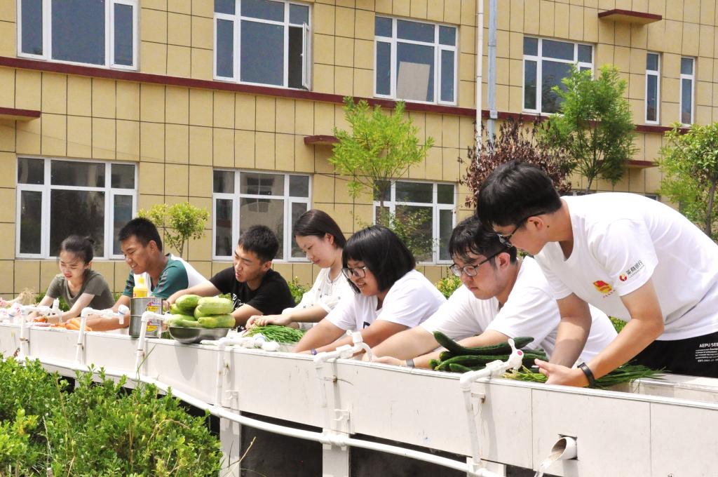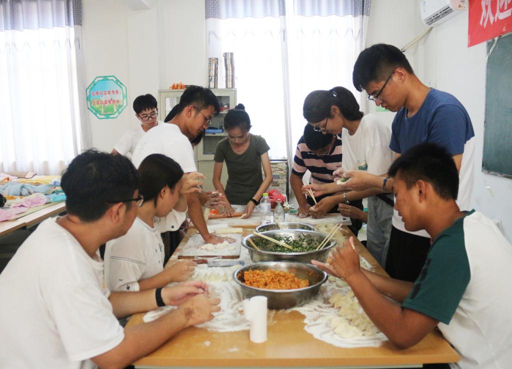 经过了长达六天的教学后,队员们获得了为期一天的休整时间。为进一步加深队员们之间的感情,增强团队协作能力,充实队员们的支教生活,支教队举行了以包饺子为主的一系列团建活动。经过队员们的认真商讨,确定了团建活动时间,活动准备以及活动方案。上午九点整,队员们前往集市购买食材。天气闷热,队员们顶着酷暑,在集市上同各个摊位比价,购买所需要的物品。经过两个多小时的筹备,队员们满载而归,正式开始包饺子活动。同时,在活动过程中,队员们遇到了一些难题。例如,由于擀皮工具的不足,擀皮速度与包饺子速度不匹配,严重限制了包饺子的速度。为了解决这个问题,队员们迅速调整策略,依照队员们包饺子的熟练程度,重新分配了工作,顺利提高了包饺子的效率。在活动过程中,队员们相互帮助,进一步加深了感情。