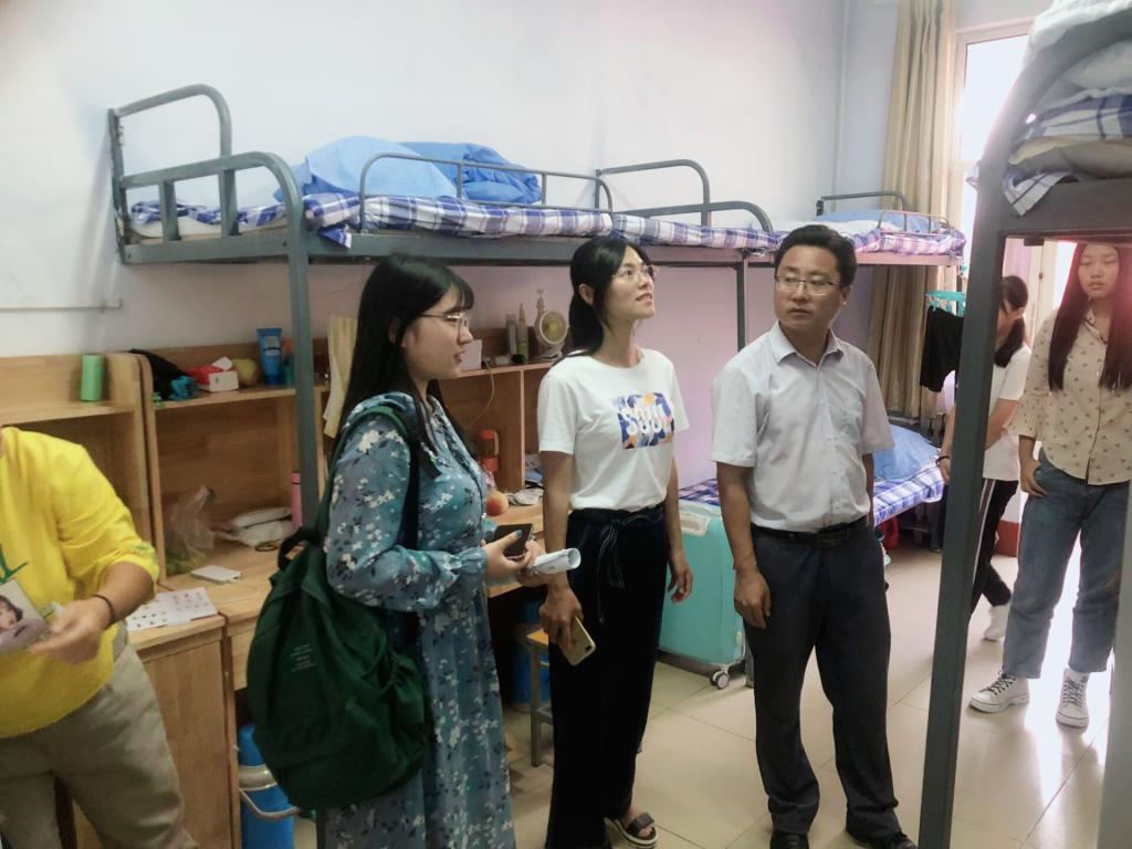 男、女新生宿舍,与同学们、家长朋友亲切交流。每走进一个学生宿舍,都细致地了解宿舍住宿条件、有无损坏现象。询问新生是否适应新的住宿条件,对宿舍住宿条件有何不满。叮嘱他们在校求学期间关注学习的同时也要关注住宿条件,有问题及时向老师、宿管反应。再次强调注意宿舍安全问题,禁止使用违规电器。同时两位老师代表学院对广大新学表示热烈欢迎,希望新生把宿舍当成新的“家”。新生对老师的走访激动不已,家长也纷纷表达感谢。