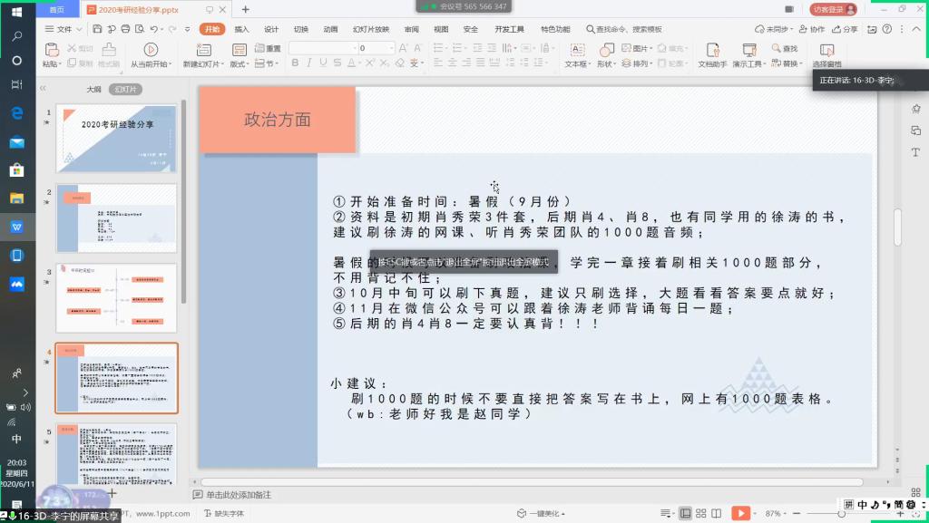 为让学院学生掌握更多考研信息、解决考研疑虑、树立正确考研目标,6月11日晚七点,信息科学与工程学院组织举办线上考研经验云交流会。本次分享会邀请六位优秀的考研学子出席并讲述他们的考研经验,全体17级考研学子参加了本次会议。