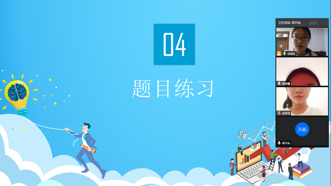 8月4日,“先生计划”教育关爱服务团顺利开展了第七天的线上教学课程,老师们在课堂上为同学们答疑解惑,拓展思维。