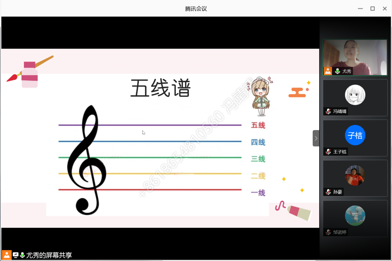 下午四点,老师面向五六年级的学生开展了特色音乐课。课堂由基础乐理知识、儿童歌曲学习和音乐作品鉴赏三个部分组成。老师在课堂上认真讲解了有关五线谱和音符的基础乐理知识,为加深同学们对知识的理解,老师以歌曲《洋娃娃和小熊跳舞》的五线谱为例,教给同学们如何识谱、读谱,并和同学们一起学唱这首歌。最后老师和同学们一起欣赏音乐剧《歌剧魅影》,一同分析电影的主要灵魂——音乐的魅力。授课中,同学们不仅拓展了音乐知识,还深刻的体会到了音乐的神奇魔力,更培养了他们的艺术细胞。