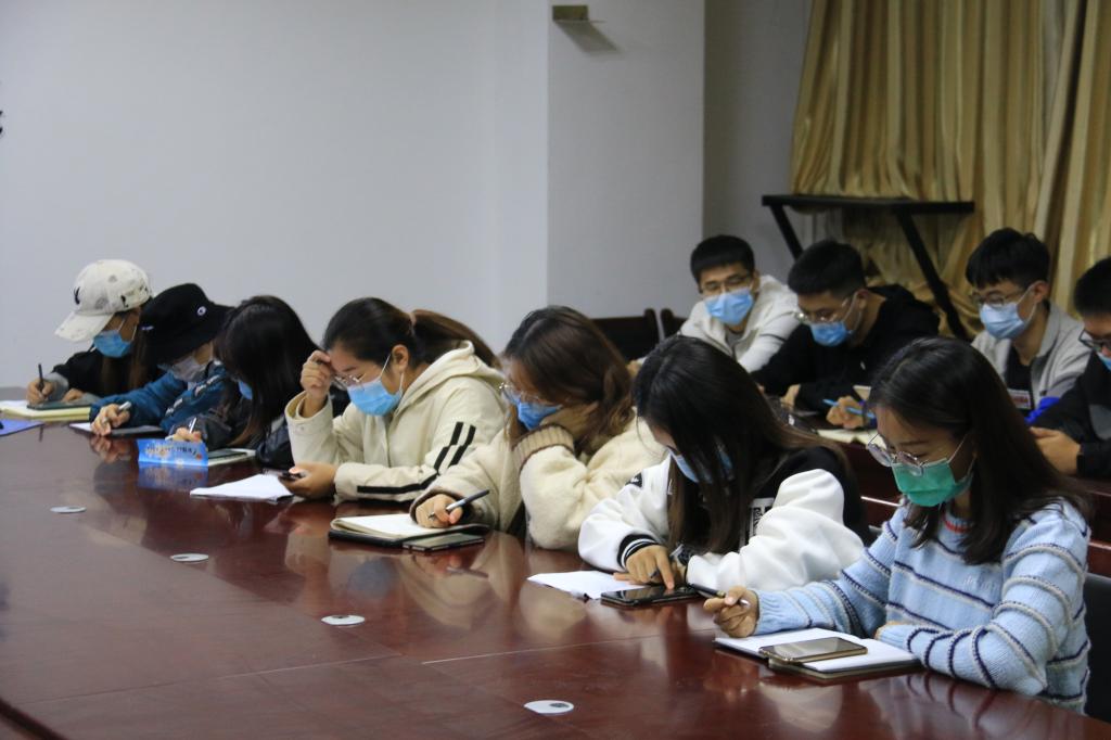 会议伊始,肖书记强调了下发文件中的重点内容,要求参会人员要细读文件,将文件吃透。肖书记指出,当下时间紧迫,到会的党员发展对象不仅要努力学习党的精神与章程,对培训要认真对待,而且自身的学习与考研计划也不能落下。接着,肖书记对23位党员发展对象强调了几点内容,第一要按照学校要求,提前完成应做工作,保持积极性;第二要认真严肃的对待入党材料问题,不能出现任何问题;第三要大家对考研以及考公保持高度积极性,为其他同学做好模范带头作用。最后肖书记希望大家发挥主观能动性,主动承担起责任,发挥出党员发展对象应有的作用,并勉励大家在学院党组织的培养下,不忘初心和使命,踏实走好人生的每一步路。
