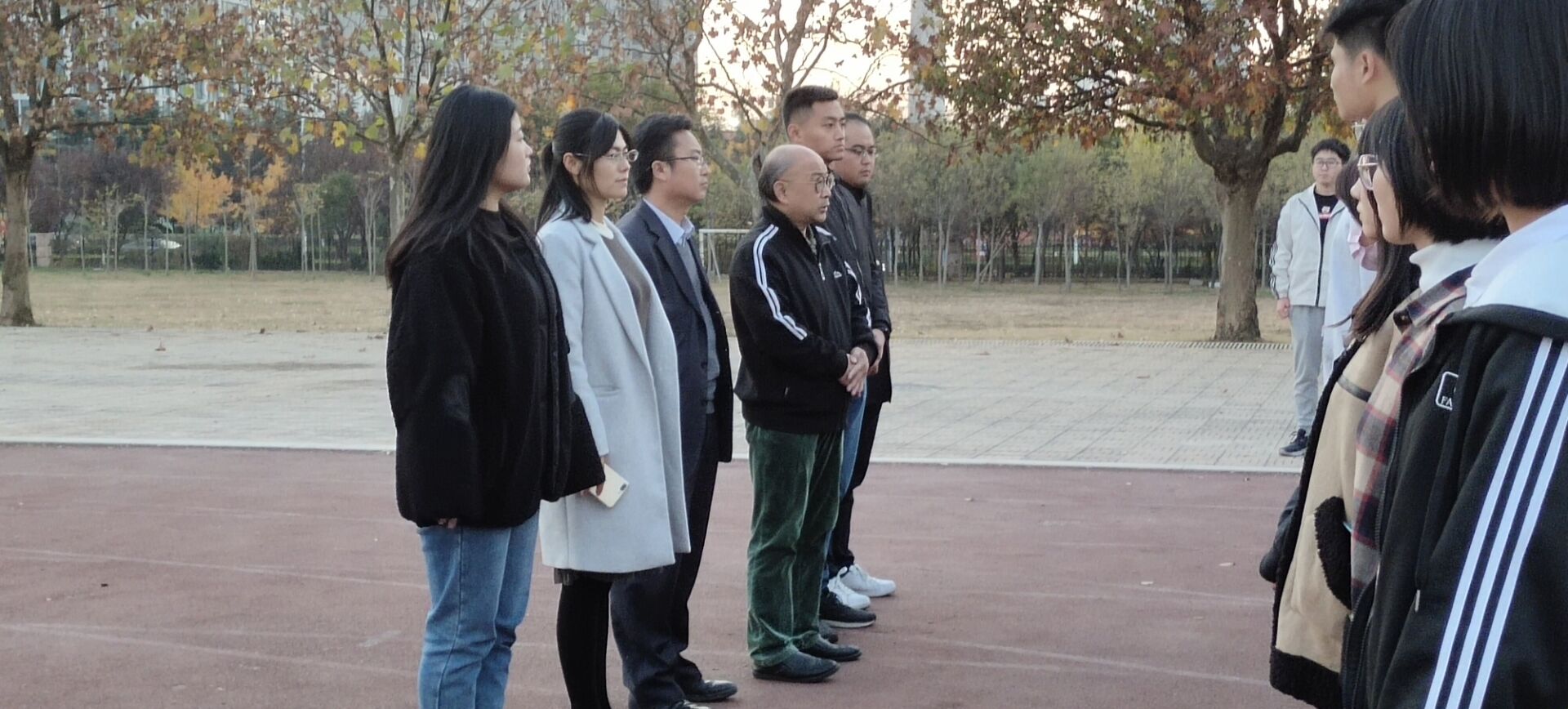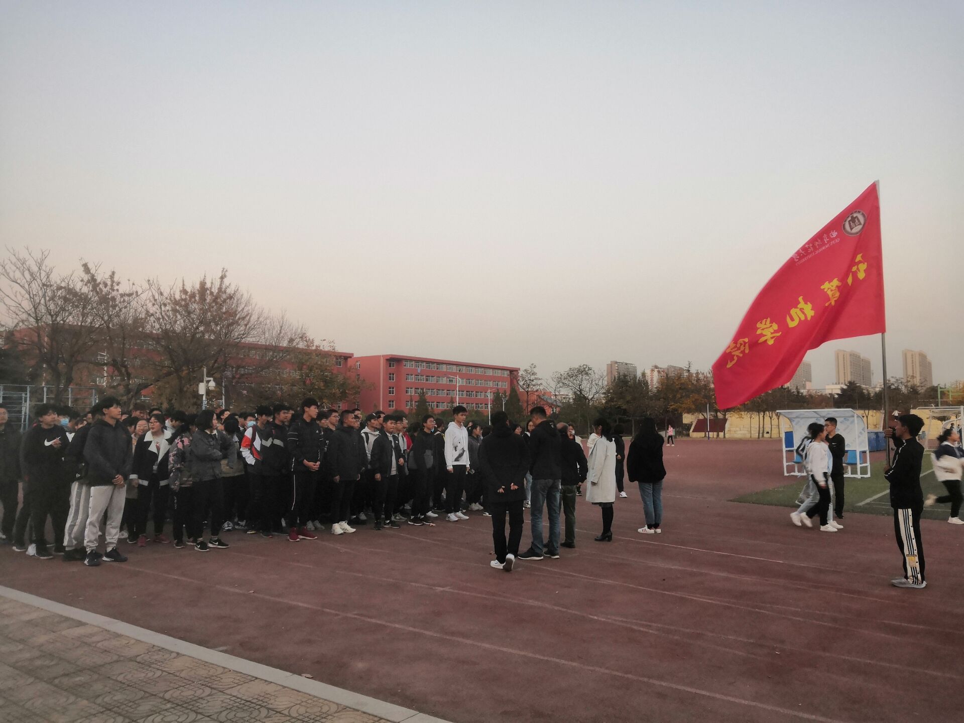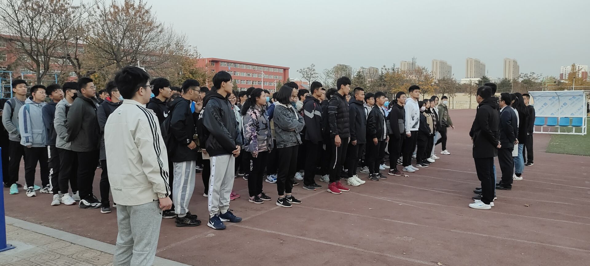 冬训于西操场正式拉开帷幕,党委副书记肖龙航,本科生党支部书记于运清,团委书记毕文波,2017级辅导员孙宇,2018级辅导员纪玉超,2020级辅导员刘兆宇出席本次活动。