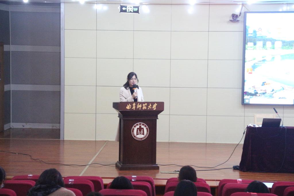 在图书馆报告厅举行女生安全知识讲座。本次讲座特邀请日照市中心医院的杨灵主任作为主讲人,出席本次讲座的领导老师有校学生工作处处长姜美颖、校团委副书记刘蓉、兔子先生