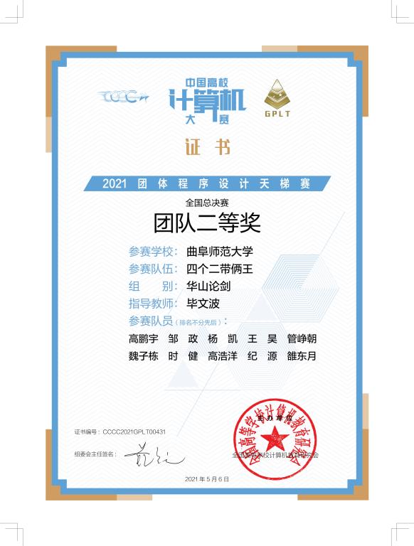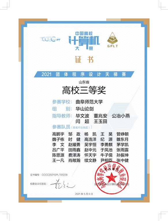 “中国高校计算机大赛-团体程序设计天梯赛”是由教育部高等学校计算机类专 业教学指导委员会、教育部高等学校软件工程专业教学指导委员会、教育部高等学校大学计算机课程教学指导委员会、全国高等学校计算机教育研究会于2016年联合创办的赛事,产生了广泛影响,在促进全国高校程序设计课程质量和水平的提高,提升学生程序设计能力等方面发挥了重要作用,于2019年进入“全国普通高校大学生竞赛排行榜”。第六届大赛共有来自全国三十个省级行政区的347所高校、1100支队伍、10946名参赛学生参加了比赛。