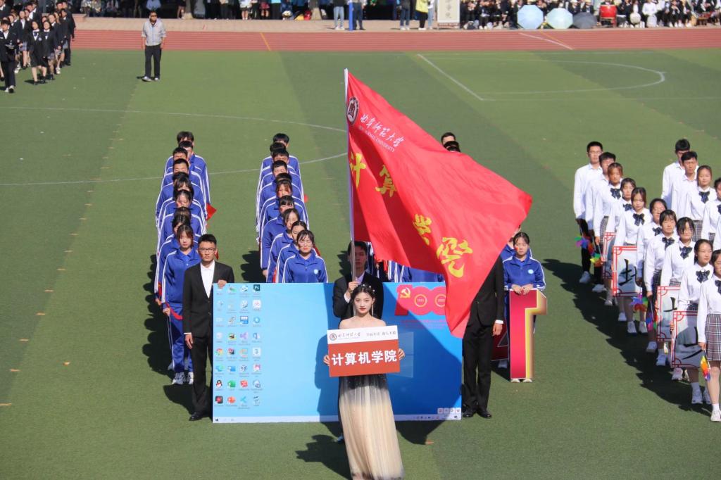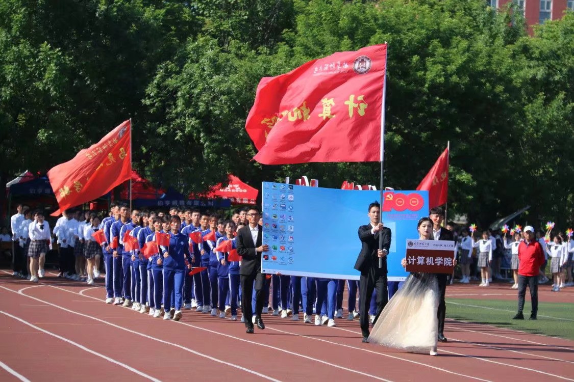 伴随着振奋人心的《运动员进行曲》,国旗护卫队精神抖擞,意气风发,阔步经过主席台接受领导和老师的检阅。随后,计算机学子身着蓝色院服踏着整齐划一的步伐,高举院旗走向主席台,他们以整齐划一的步伐向大家展现了计算机学子特有的朝气,同时也向大家展示计算机学子的自信与热情。“扬帆起航,劈波斩浪。计算人才,编译未来。 ”的高亢嘹亮的口号向我们展现出昂扬的精神风貌。方队入场后,进行升旗仪式,五星红旗在全校师生的注目下冉冉升起。最后,全体师生共同观看开幕式文艺演出。兔子先生
