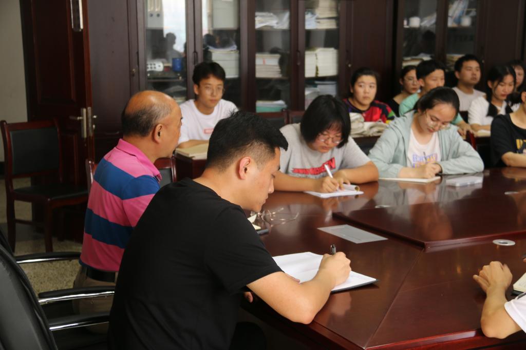 肖龙航就如何调动同学们的考研积极性,使同学们明白考研对自我成长、未来发展的重要意义,明确考研方向和树立考研信心等问题,提出指导建议:1.各班党员、学生干部应切实加强带头起模范作用,用自身行动号召同学们踊跃报考;2.强化同学们的考研观念,深化考研意识,制定先考研后就业的计划;3.各班班团制定切合实际的考研计划和考研目标,为同学们的考研提供方向。
