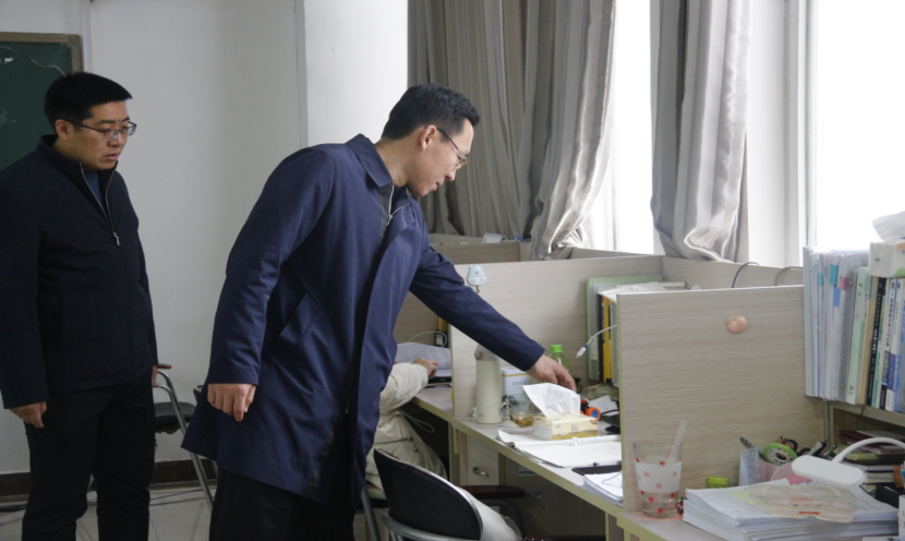 党委书记于健、副院长刘效武、尚军亮对科研实验室、研究生教室、办公室、机房等重点单位开展安全隐患督查工作。