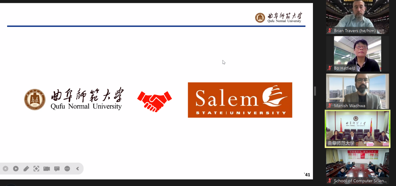 计算机学院相关负责人、国际交流合作处全体人员,塞勒姆州立大学全球参与副教务长Julie Whitlow博士及相关负责人等参加会议。