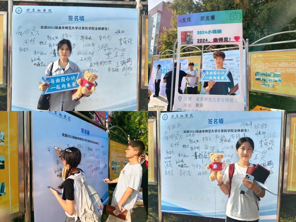 学院迎新特别设置了“编程体验处”,迅速聚焦了众多新生的目光。这里,生动的科普编程动画与直观的图形化编程语言交相辉映,使得零基础的学子也能轻松踏入编程的奇妙世界,亲身体验编程带来的无限乐趣与创造力。同时学院设计了签名墙,新生报到后可以在签名墙上签名并与家长拍照留念。