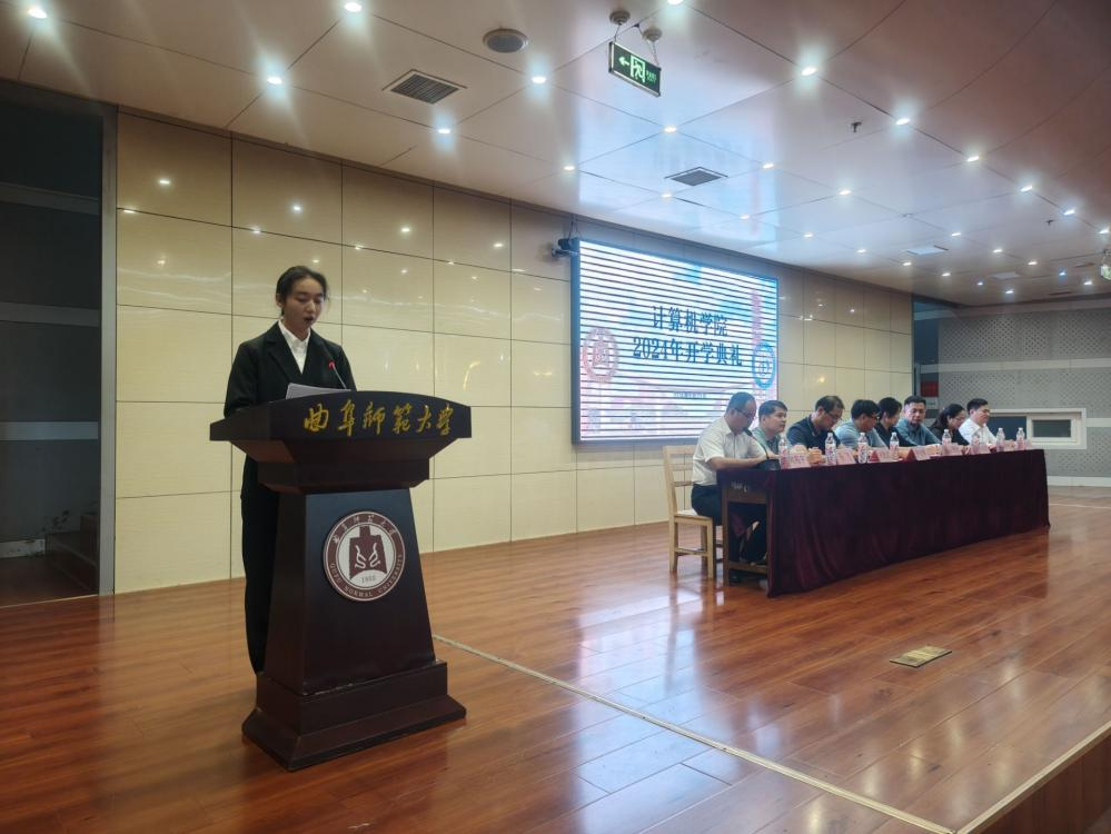 党委书记张明洁、院长李光顺、党委副书记孙旭春、副院长刘效武,以及计算机科学与技术系主任马飞、网络工程系主任马春梅、数据科学与大数据技术系主任董兆安出席典礼,团委书记刘兆宇主持典礼。