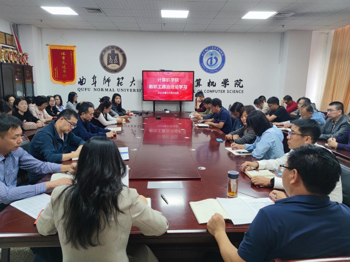 于JC1011召开全体教职工政治理论学习活动,本次活动由党委书记张明洁主持。