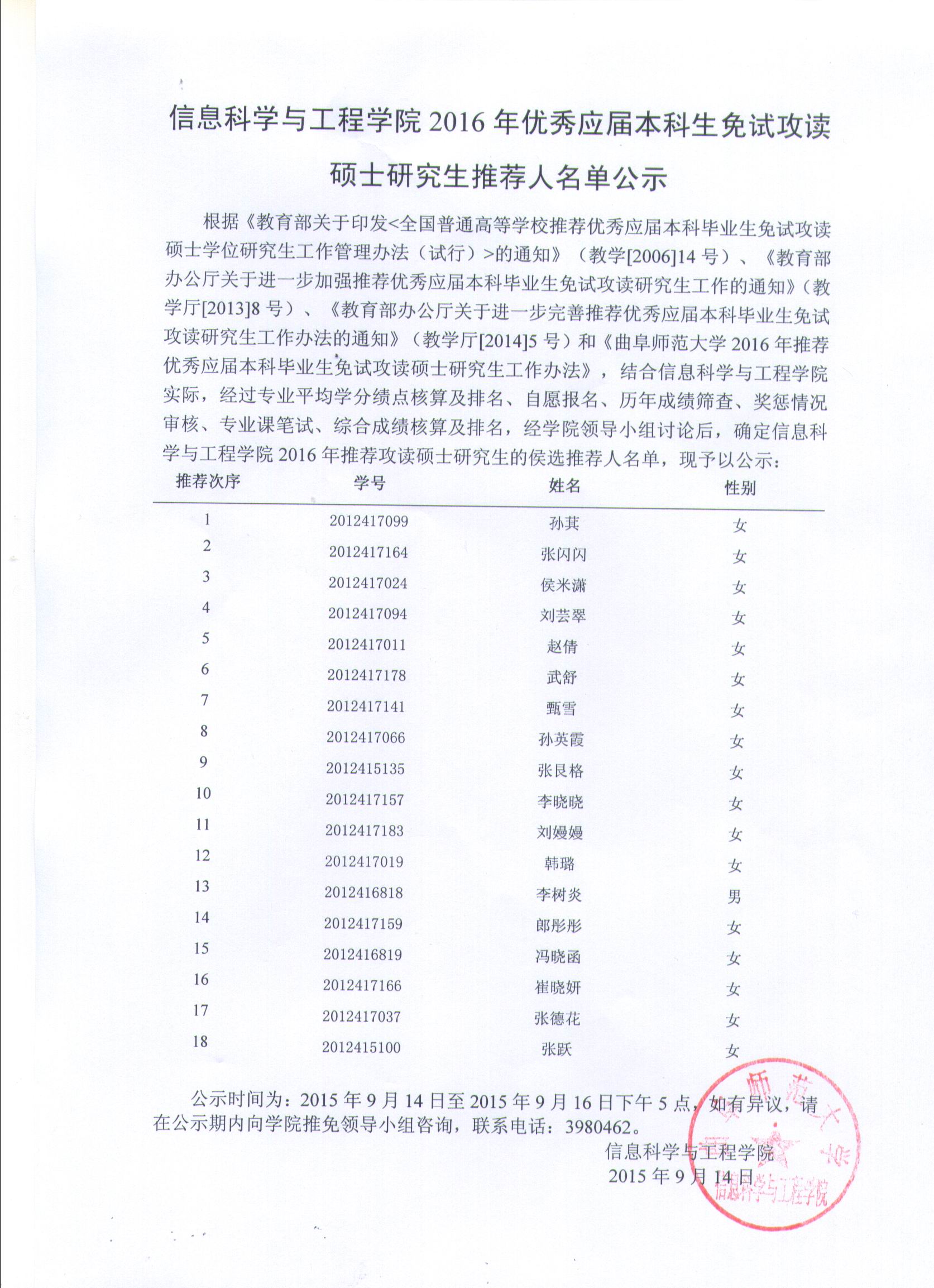 上一条: 信息科学与工程学院2015年度研究生国家级奖学金评定公示