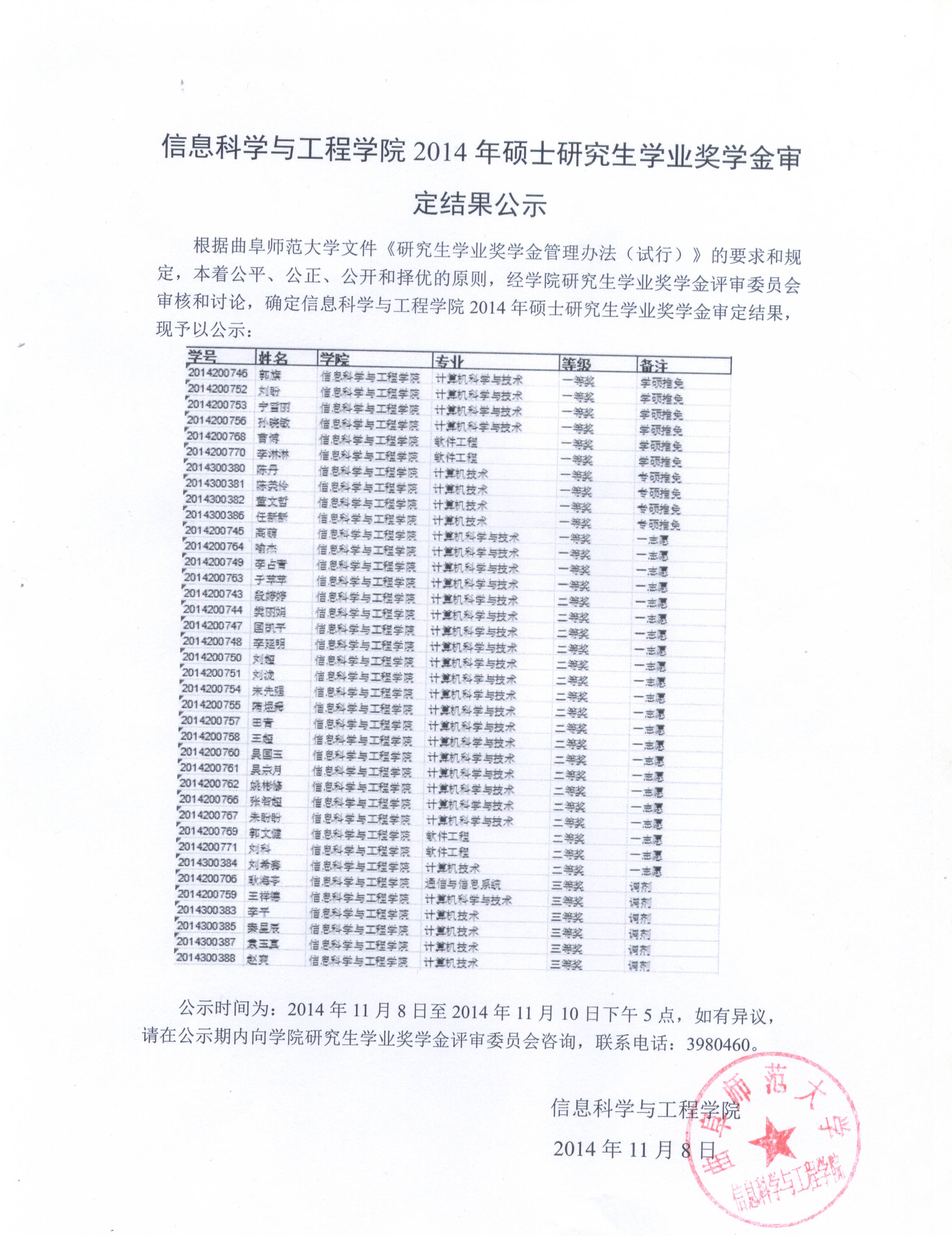 下一条: 2014年研究生国家奖学金评定公示