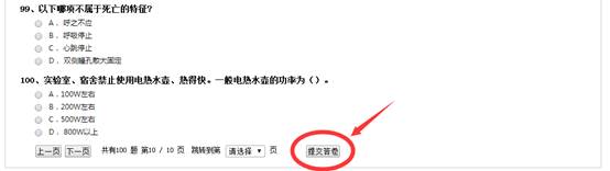 6、点击“在线练习”版块进行自我测试,当次测试结束后点击“提交答卷”, 系统显示测试成绩,随即可查看答卷正误详情或返回考试主页 进行其他类别测试,测试次数不记入考试次数