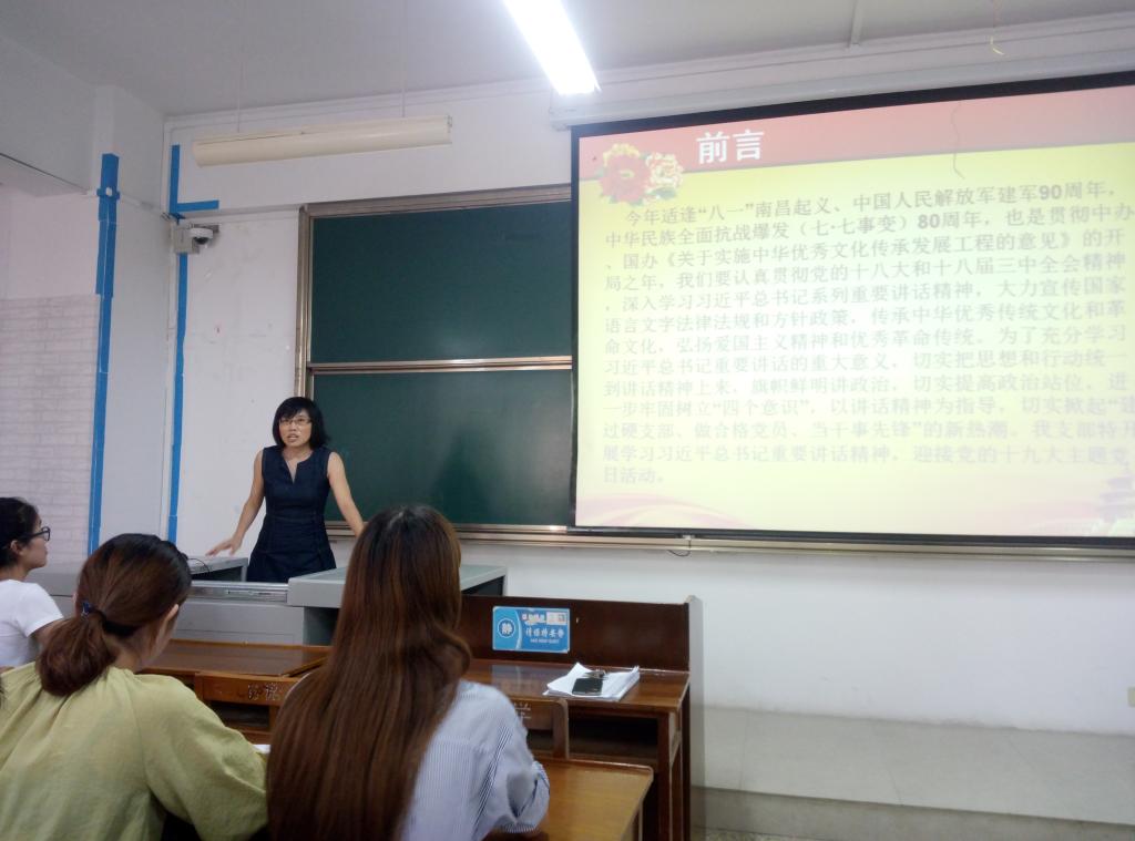 今年是推普周活动举办20周年,又适逢“八一”南昌起义、中国人民解放军建军90周年,中华民族全面抗战爆发(七·七事变)80周年,也是贯彻中办、国办《关于实施中华优秀文化传承发展工程的意见》的开局之年,为深入贯彻党的十八大和十八届三中全会精神,做好“推普周”活动,深入学习习近平总书记系列重要讲话精神,大力宣传国家语言文字法律法规和方针政策,传承中华优秀传统文化和革命文化,弘扬爱国主义精神和优秀革命传统。信息科学与工程学院研究生党支部于2017915日于JC406开展学习习近平总书记重要讲话精神,迎接党的十九大主题党日活动。支部书记夏小娜老师与全体研究生党员参与活动,会议在支部副书记孙坤同志的主持下顺利进行。