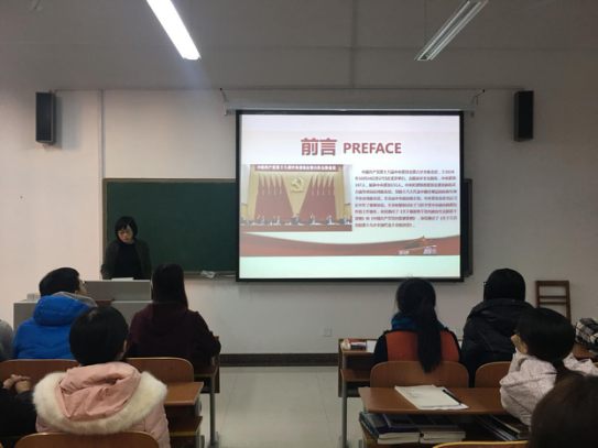 本次会议的主要内容为由支部书记夏小娜老师带领全体支部党员学习十八届六中全会精神。夏老师主要从四个方面对十八届六中全会进行了诠释。首先,夏老师带领大家学习了大会通过的两个重要文件,并要求大家在平时的学习中加强对两个文件的理解和学习。随后,夏老师从全面从严治党、领导核心、党内政治生活、党内监督以及纪律严明这五大关键词入手,深入解读了十八届六中全会公报及其精神。全体党员认真学习了新形势下如何加强和规范党内生活以及六中全会关于党内监督的内容,其中最为醒目的一句话为“党内监督没有禁区、没有例外”。最后,夏老师要求全体党员在平时的学习中要加深对十八届六中全会精神的理解,并通过不断深入地学习得出自己的心得体会。