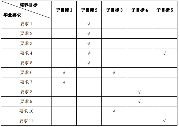 说明:毕业要求对培养目标子目标的支撑用“√”表示
