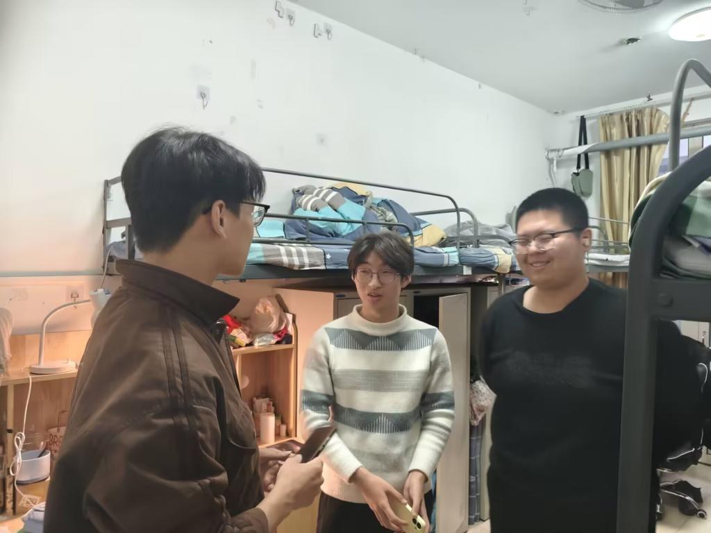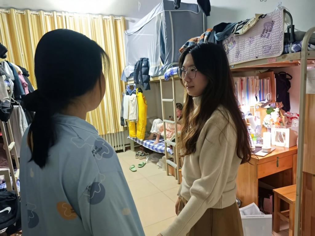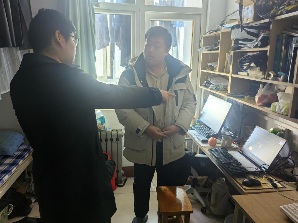 团委书记刘兆宇、辅导员孙泽玮、辅导员杨丹丹,团委副书记艾姜欢、杨潇文,宿管部部长吴镇宇、崔诺深入学生宿舍,开展走访活动。活动聚焦消防安全、网络安全、冬季健康等关键领域,以精准排查和宣传教育筑牢安全防线。