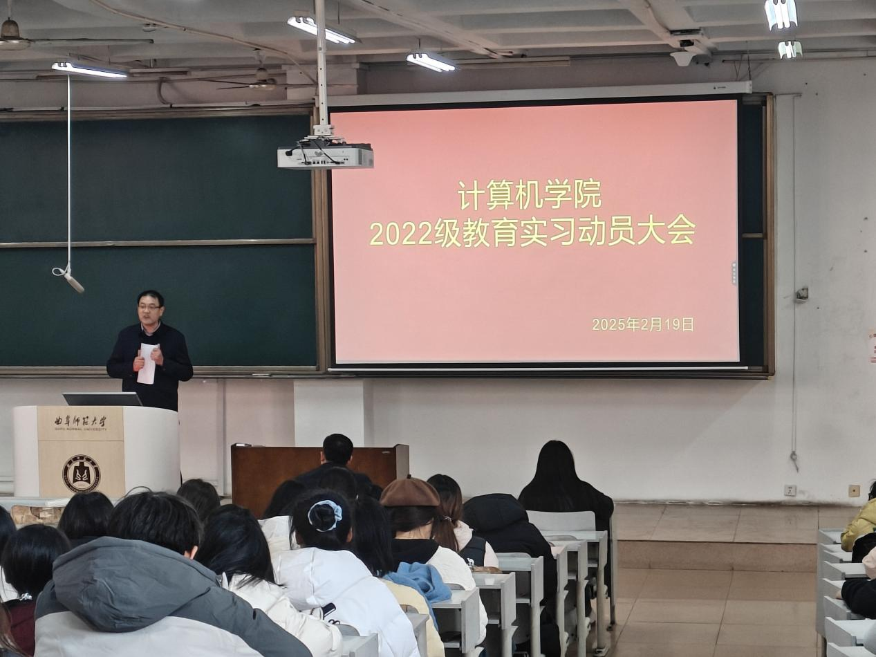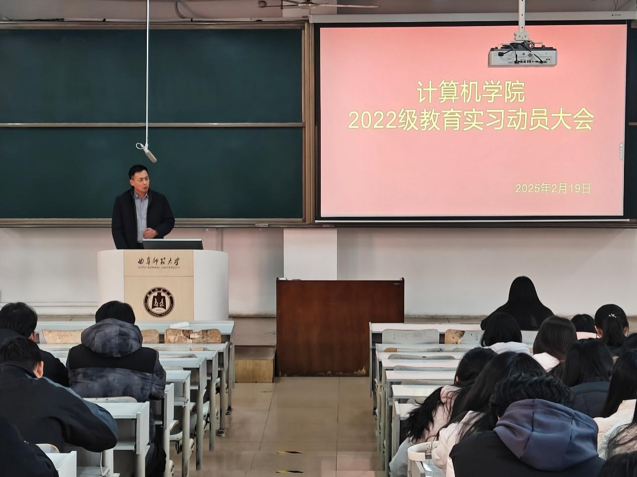 在JA205举办了教育实习动员大会,党委副书记孙旭春、副院长刘效武、辅导员孙宇出席本次会议,全体实习生参与。