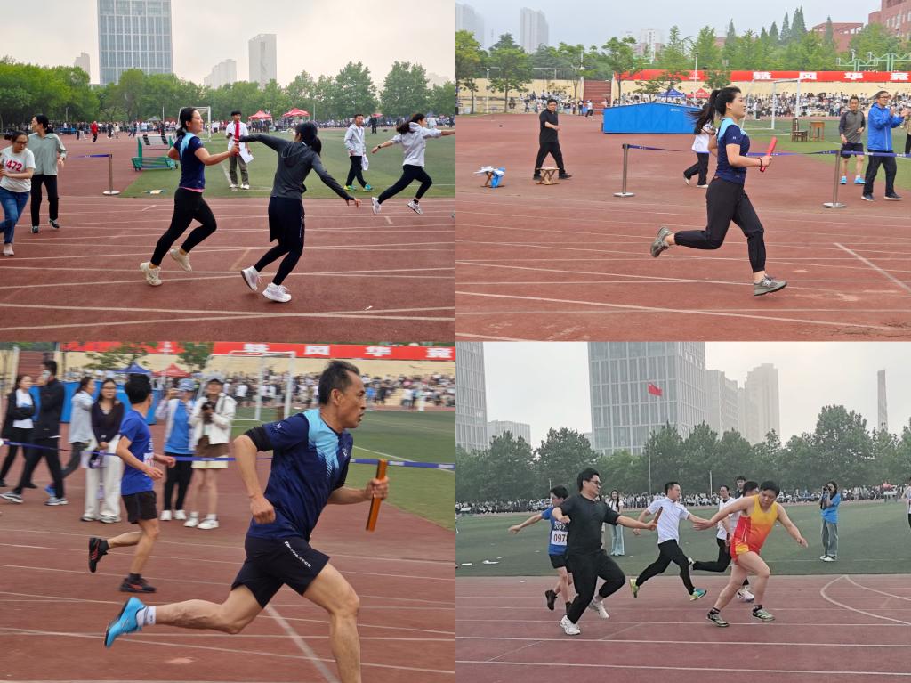 均取得第一名的优异成绩。在教工组4×100米接力预赛中,男子组和女子组分别以第三名和第四名的好成绩进入决赛。
