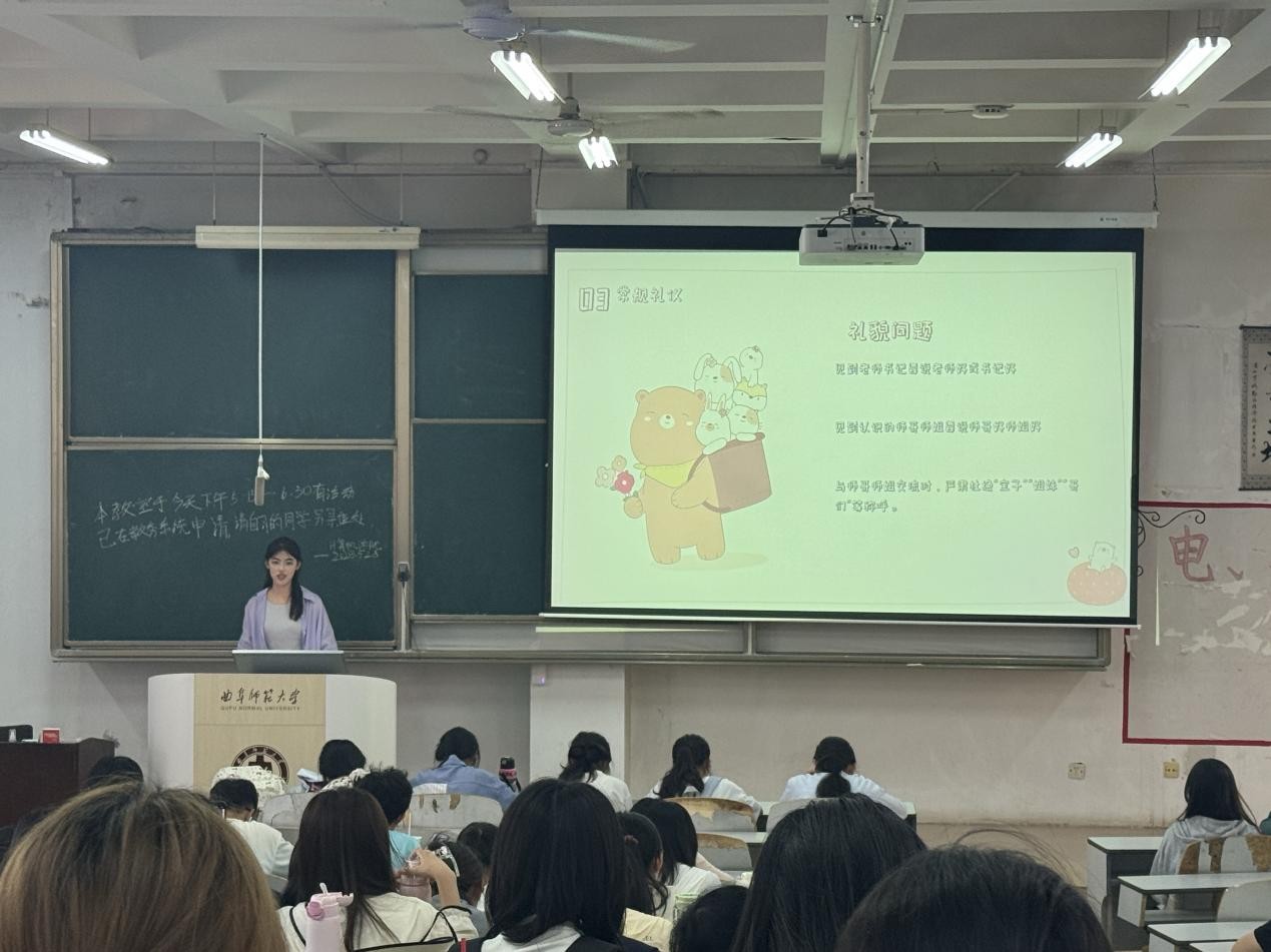 讲座围绕女性健康、形象管理与礼仪修养三部分展开。主讲人首先借助生动的案例深入浅出地讲解了日常保健、疾病预防等方面的女性健康知识。随后,主讲人从化妆技巧、发型设计、服装搭配等方面进行形象指导。最后,她详细讲解了在不同场合下的礼仪规范,包括言谈举止、餐桌礼仪以及职场礼仪等,帮助同学们在日常生活中更加自信得体。